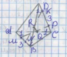 Теперь найдём середины отрезков \( MP \) и \( NK \). Середина отрезка \( MP \) — это точка \( R \) с координатами, которые равны среднему арифметическому соответствующих координат точек \( M \) и \( P \):