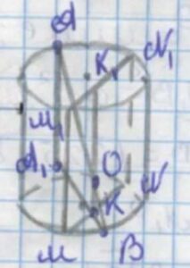 Плоскость \(MM_1N_1\) пересекает оси цилиндра, проходящие через точки \(A\) и \(B\), в точках \(M_1\) и \(N_1\) соответственно.