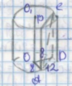 Радиус основания цилиндра равен 4 см. Высота цилиндра вычисляется по формуле \(h = \sqrt{7.31^2 — 4^2} = 4\sqrt{2}\) см.