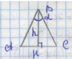 Далее выразим основание \(b\) через высоту \(h\) и угол \(\alpha\). Высота делит равнобедренный треугольник на два прямоугольных треугольника, где: