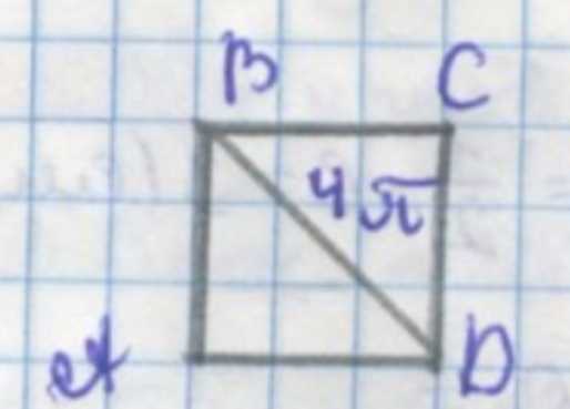 Диагональ квадрата \(d = 4\pi\). Сторона квадрата \(a = \frac{d}{\sqrt{2}} = \frac{4\pi}{\sqrt{2}} = 2\pi \sqrt{2}\).