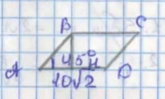 Основанием призмы является ромб со стороной \(10\sqrt{2}\) см и углом \(45^\circ\). Чтобы найти высоту ромба, рассмотрим треугольник, образованный стороной ромба и высотой, опущенной на эту сторону. Высота \(BH\) ромба — это перпендикуляр из вершины \(B\) на сторону \(AD\). Из определения синуса угла в прямоугольном треугольнике следует, что \(\sin 45^\circ = \frac{BH}{AB}\), где \(AB = 10\sqrt{2}\) см — сторона ромба. Подставляя значения, получаем \(BH = AB \cdot \sin 45^\circ = 10\sqrt{2} \cdot \frac{\sqrt{2}}{2}\). Поскольку \(\sqrt{2} \cdot \sqrt{2} = 2\), то \(BH = 10 \cdot \frac{2}{2} = 10\) см. Таким образом, высота ромба равна 10 см.