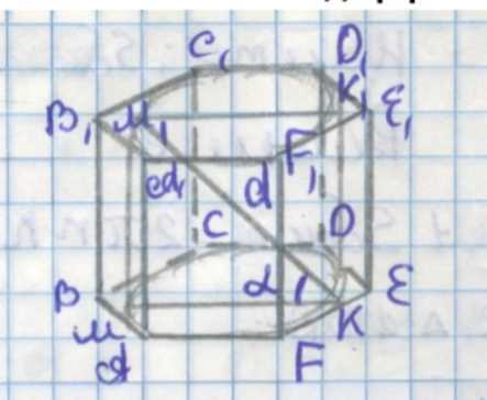 В правильную призму \(ABCDEFA_1B_1C_1D_1E_1F_1\) вписан цилиндр, касающийся боковых граней \(AA_1B_1B\) и \(BB_1C_1C\) по образующим \(MM_1\) и \(KK_1\) соответственно. Диагональ осевого сечения этого цилиндра равна \(d\) и наклонена к плоскости основания под углом \(\alpha\). Найдите площадь четырёхугольника \(MM_1K_1K\).