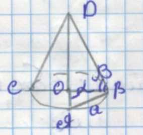 Сначала выразим радиус основания конуса \(n\) через длину хорды \(a\) и угол дуги \(\alpha\): \(n = \frac{a}{2\sin\left(\frac{\alpha}{2}\right)}\).