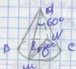 1. Пусть радиус основания конуса равен \( r \), а длина образующей — \( l \). По условию задачи известно, что сумма квадратов двух образующих, между которыми угол \( 60^\circ \), равна \( 64 \), то есть \( 2r^2 = 64 \). Отсюда находим \( r^2 = 32 \), значит \( r = 4\sqrt{2} \) см.