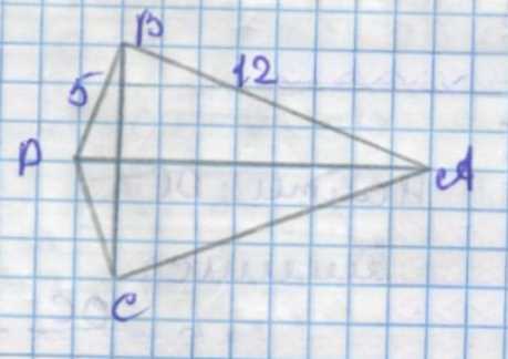 \( DC = \sqrt{5^2 + 12^2} = \sqrt{25 + 144} = \sqrt{169} = 13 \) см.