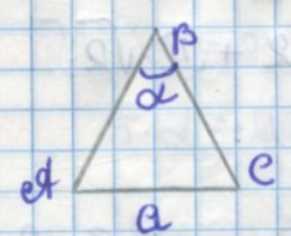 Для нахождения площади поверхности тела вращения, образованного равнобедренным треугольником с основанием \(a\) и противолежащим углом \(\alpha\), который вращается вокруг прямой, содержащей его основание, сначала выразим боковую сторону треугольника через \(a\) и \(\alpha\). В равнобедренном треугольнике боковые стороны равны, а угол при вершине равен \(\alpha\). Проведём высоту из вершины на основание, она делит угол \(\alpha\) пополам, а основание — на два равных отрезка по \(\frac{a}{2}\). Тогда, используя определение синуса, получаем: боковая сторона \(b = \frac{a}{2\sin\frac{\alpha}{2}}\).