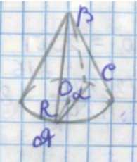1. Пусть дан конус с радиусом основания \(R\). Через две его образующие проведено сечение, угол между плоскостью сечения и плоскостью основания конуса обозначим как \(\alpha\), а угол между образующей и основанием — как \(\beta\). Требуется найти площадь этого сечения. Для решения задачи рассмотрим, что сечение конуса через две образующие представляет собой прямоугольник или трапецию, но в данном случае формула учитывает углы наклона, поэтому используется тригонометрия.