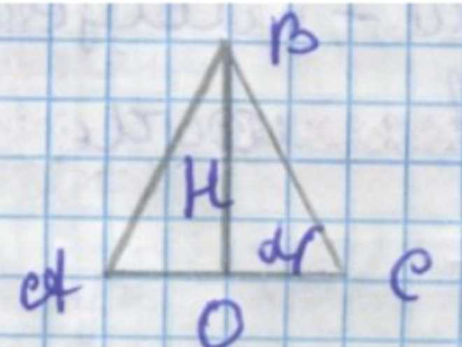 Для нахождения площади осевого сечения конуса рассмотрим треугольник, образованный высотой конуса \(H\) и двумя образующими, которые пересекают основание под углом \(\alpha\). Осевое сечение — это треугольник, у которого высота равна \(H\), а основание — это диаметр основания конуса. Диаметр основания можно выразить через угол \(\alpha\): если радиус основания \(R = H \tan \alpha\), то диаметр \(2R = 2H \tan \alpha\). Однако, в осевом сечении основание треугольника связано с катетом, противоположным углу \(\alpha\), то есть \(OC = H \cot \alpha\), а весь отрезок основания \(AC = 2H \cot \alpha\). Площадь треугольника вычисляется по формуле: \(\frac{1}{2} \times \text{основание} \times \text{высота}\), то есть \(\frac{1}{2} \times 2H \cot \alpha \times H = H^2 \cot \alpha\). Так как \(\cot \alpha = \frac{1}{\tan \alpha}\), окончательно получаем: \(S_{\text{ос. сеч.}} = \frac{H^2}{\tan \alpha}\).