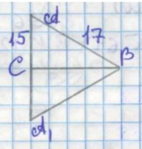 Площадь треугольника: \( S = \frac{1}{2} \cdot 15 \cdot 8 = 60 \)