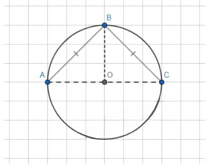 Шаг 1. Пусть радиус окружности равен R. Так как точка O – центр, то OA = OB = OC = R.