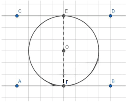 Но так как OE и OF лежат на одной прямой, то обе касательные — CD и AB — перпендикулярны одной и той же прямой EF.