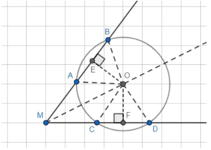 2. Так как OE и OF — перпендикуляры, проведённые к сторонам угла, то точки E и F являются серединами отрезков, которые соединяют точки пересечения окружности со сторонами угла. Иными словами: