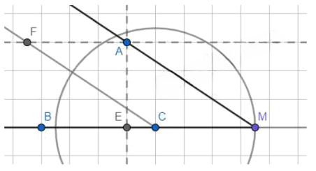 Шаг 5. На прямой BC отложим отрезок CM, равный отрезку AF. Это можно сделать с помощью циркуля: откладываем отрезок AF на прямой BC начиная из точки C. Пусть M — это конечная точка полученного отрезка.