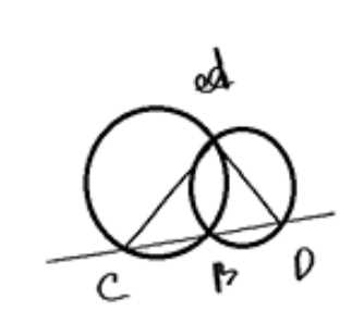 Две окружности пересекаются в точках A и B. Через точку B проведена секущая, которая пересекает окружности в точках C и D. Так как \(\angle ACB = \angle ADB\) согласно теореме о вписанных углах, то \(\angle CAD\) является постоянным для всех секущих, проходящих через точку B.