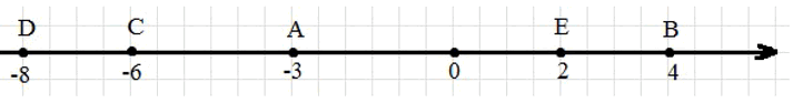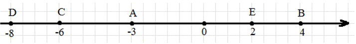 3) Точки D (-8) и E (2) удалены от точки A (-3) на одинаковое расстояние — 5 единиц.