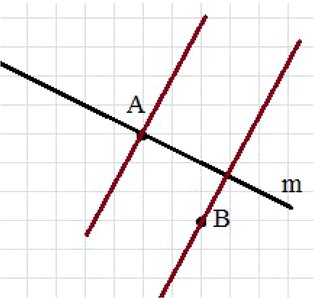 Перерисуйте рисунок 6. Проведите через каждую из точек A и В прямую, перпендикулярную прямой m.