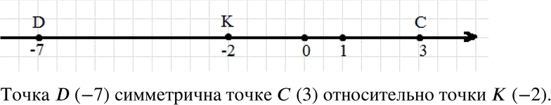 Начертите координатную прямую и отметьте на ней точки С (3) и К (-2). Постройте точку D, симметричную точке С относительно точки К, и определите её координату.