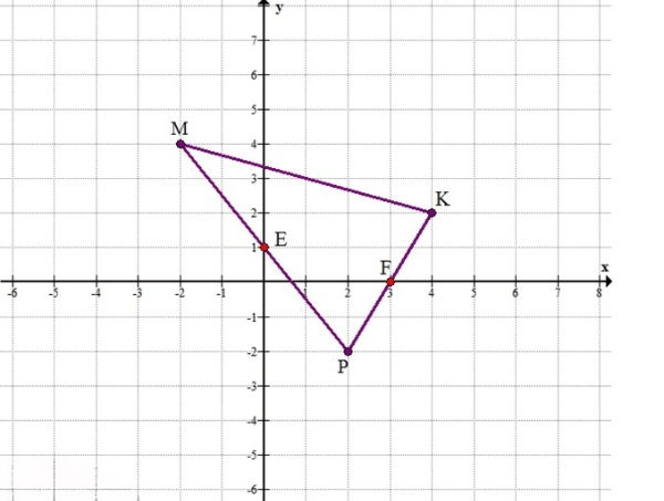 Начертите на координатной плоскости треугольник МКР, если М (-2; 4), К (4; 2), Р (2; -2). Найдите координаты точек пересечения стороны МР с осью у и стороны КР с осью х.