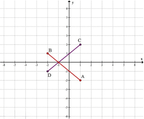 — Отрезок \( CD \) соединяет точки \( C(1; 2) \) и \( D(-2; -1) \).