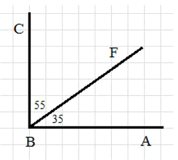 — Проведите луч BF внутри угла так, чтобы угол между AB и BF был 35°, а угол между CB и BF был 55°.