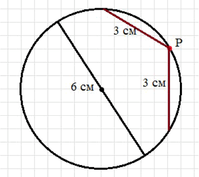 Начертите окружность, диаметр которой равен 6 см. Отметьте на окружности точку Р. Найдите на окружности точки, удалённые от точки Р на 3 см.