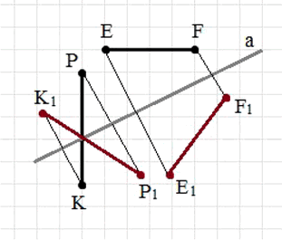 \text{Постройте отрезок } K_1P_1, \text{ симметричный отрезку } PK \text{ относительно прямой } a.