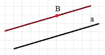 Начертите прямую а, отметьте вне её точку В. Проведите через точку В прямую, параллельную прямой а.