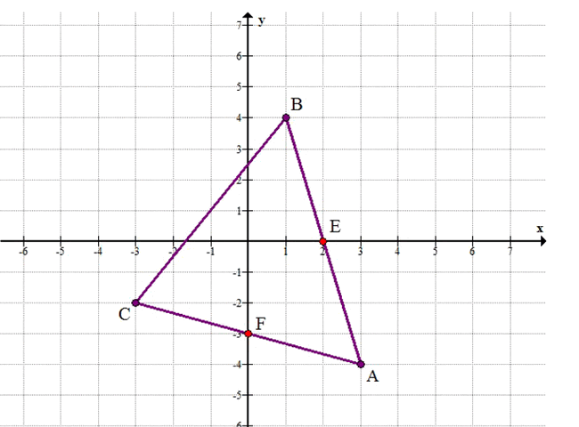 Начертите на координатной плоскости треугольник АВС, если А (3; -4), В (1; 4), С (-3; -2). Найдите координаты точек пересечения стороны АВ с осью х и стороны АС с осью у.