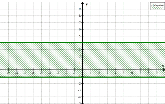 Изобразите на координатной плоскости все точки (х; у) такие, что -1 ? у ? 4, х — произвольное число.