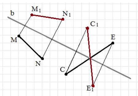 Перечертите рисунок 31. Постройте отрезки, симметричные отрезкам MN и СЕ относительно прямой b.