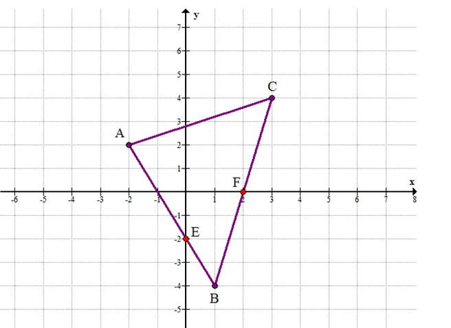 Начертите на координатной плоскости треугольник АВС, если А (-2; 2), В (1; -4), С (3; 4). Найдите координаты точек пересечения стороны АВ с осью у и стороны ВС с осью х.