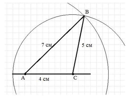 Получаем треугольник со сторонами \( 4 \) см, \( 7 \) см, \( 5 \) см.