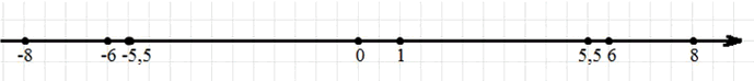 Отметьте на координатной прямой числа, модуль которых равен: 6; 5,5; 8.