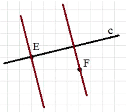 Перечертите рисунок 42. Проведите через каждую из точек Е и F прямую, перпендикулярную прямой с.
