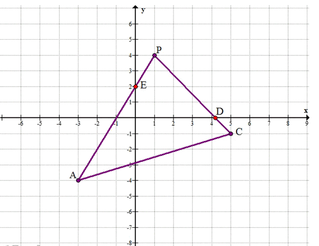 Начертите на координатной плоскости треугольник АРС, если А (-3; -4), Р (1; 4), С (5; -1). Найдите координаты точек пересечения стороны PC с осью х и стороны АР с осью у.