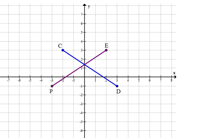 — Координаты точек отрезка РЕ: Р(-3, -1), Е(2, 3)